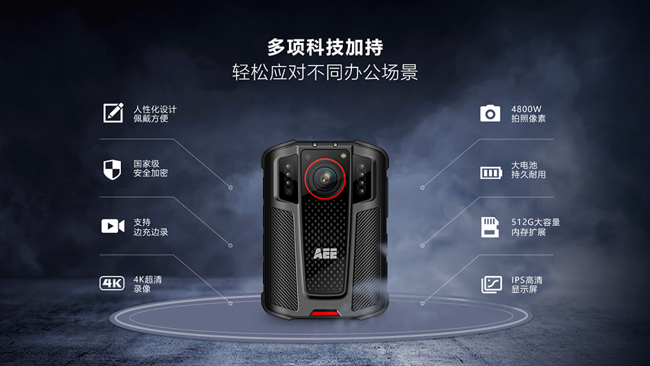 如今對(duì)執(zhí)法記錄儀的使用要求越來(lái)越高,各方面性能也在不斷的進(jìn)步。AEE 鋒派系列執(zhí)法記錄儀由內(nèi)到外性能全面升級(jí),功能上增加了鐳射燈定位功能,該功能配合鏡頭拍攝定位,在低照度環(huán)境下高精度指示精準(zhǔn)拍攝指定角度的現(xiàn)場(chǎng)畫(huà)面;其次增加防誤操作功能,即使在錄像過(guò)程中,不小心誤碰其它鍵,或發(fā)生其它意外,AEE 執(zhí)法記錄儀鋒派產(chǎn)品不會(huì)停止正常錄像;除此之外,它們兼容性更強(qiáng),它支持各類對(duì)講機(jī),當(dāng)連接對(duì)講機(jī)的時(shí)候,記錄儀便成為麥克風(fēng), 該機(jī)防摔、抗震性較好,滿足多種應(yīng)用場(chǎng)景使用,確保不受環(huán)境影響可靠運(yùn)行。適用于交通、郊外及惡劣天氣等易受雨水、灰塵、光照影響及復(fù)雜環(huán)境的場(chǎng)所。