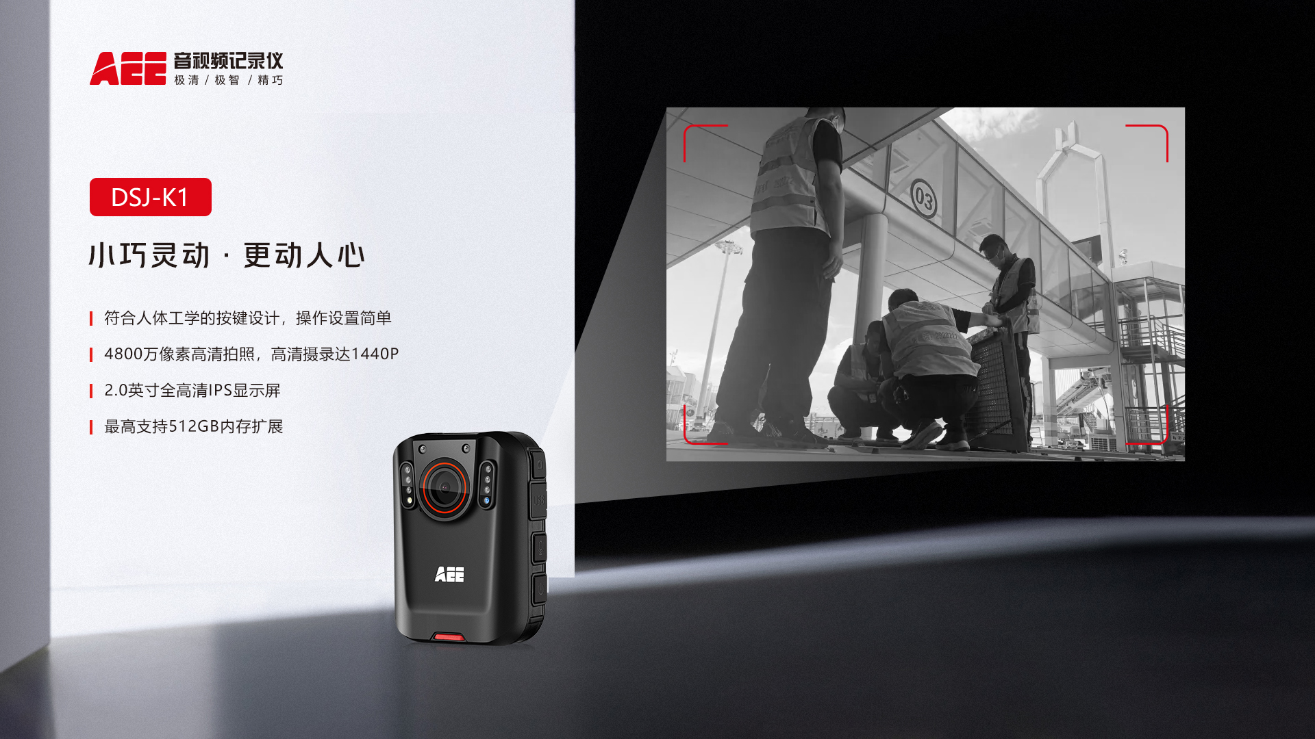 AEE K1音視頻記錄儀小巧便攜,功能強(qiáng)大,長(zhǎng)時(shí)間佩戴也不會(huì)有負(fù)重感,2.0英寸IPS高清高亮炫彩屏,支持1440P高清攝錄和4800W像素主攝像頭,結(jié)合F2.5光圈6G鏡頭和170°大廣角,能夠保證巡檢人員在工作時(shí)拍到更清晰廣闊的畫(huà)面,現(xiàn)場(chǎng)細(xì)節(jié)不丟失。