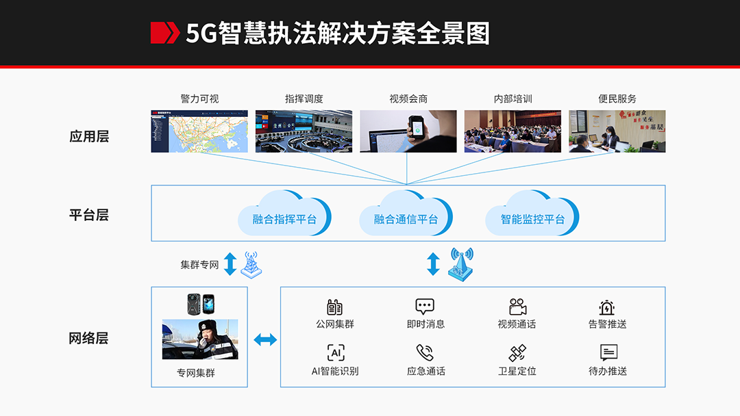 AEE DSJ-S8 5G智慧移動(dòng)執(zhí)法解決方案,依托移動(dòng)強(qiáng)大的5G網(wǎng)絡(luò),可實(shí)現(xiàn)全國(guó)范圍內(nèi)不限距離視頻會(huì)議、集群對(duì)講、定位、AI識(shí)別,以及調(diào)度管理功能,在公網(wǎng)對(duì)講的同時(shí),實(shí)現(xiàn)圖文上報(bào)、實(shí)時(shí)視頻回傳等多媒體服務(wù),以及執(zhí)法過程中的錄音、拍照取證、執(zhí)法錄像,同步到終端平臺(tái),為指揮調(diào)控人員提供實(shí)時(shí)、準(zhǔn)確的現(xiàn)場(chǎng)實(shí)況,為正確決策和指揮一線工作提供直觀、可靠的第一手資料,進(jìn)而提高公安機(jī)關(guān)快速反應(yīng)、統(tǒng)一指揮、協(xié)同作戰(zhàn)能力。